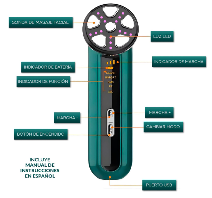 Aparelho Radiofrequência Massajador Facial 5 em 1 - 5ª Geração