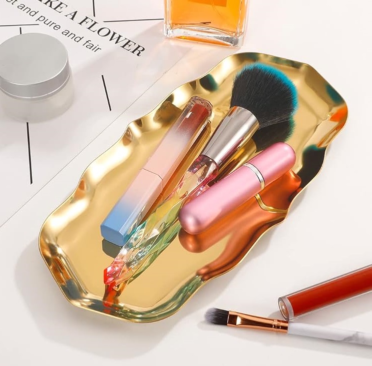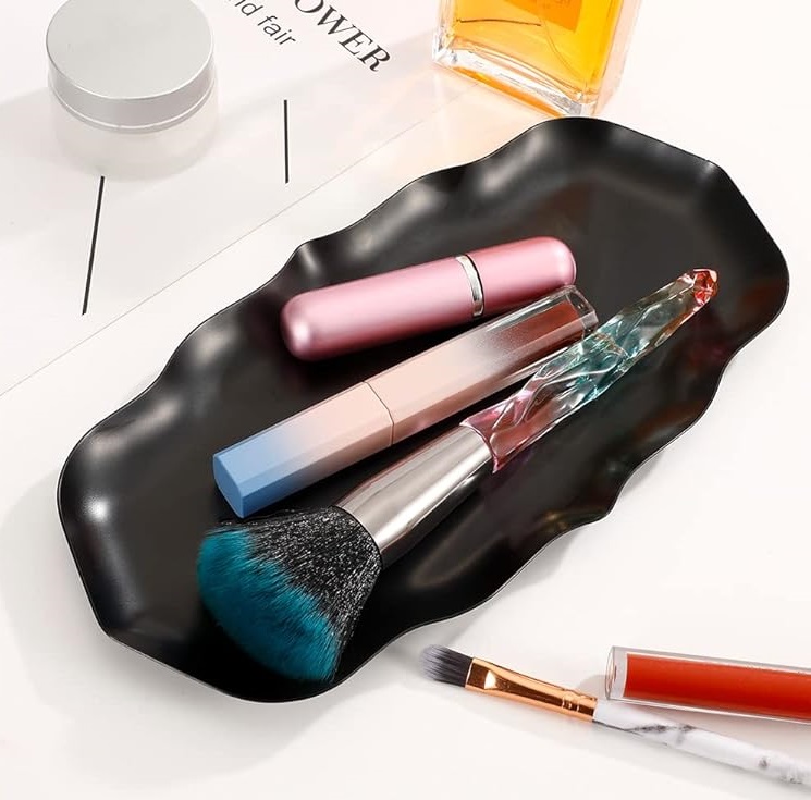 Design retangular ondulada: Bandeja elegante, superfície polida, resistente e durável para segurar ou exibir.