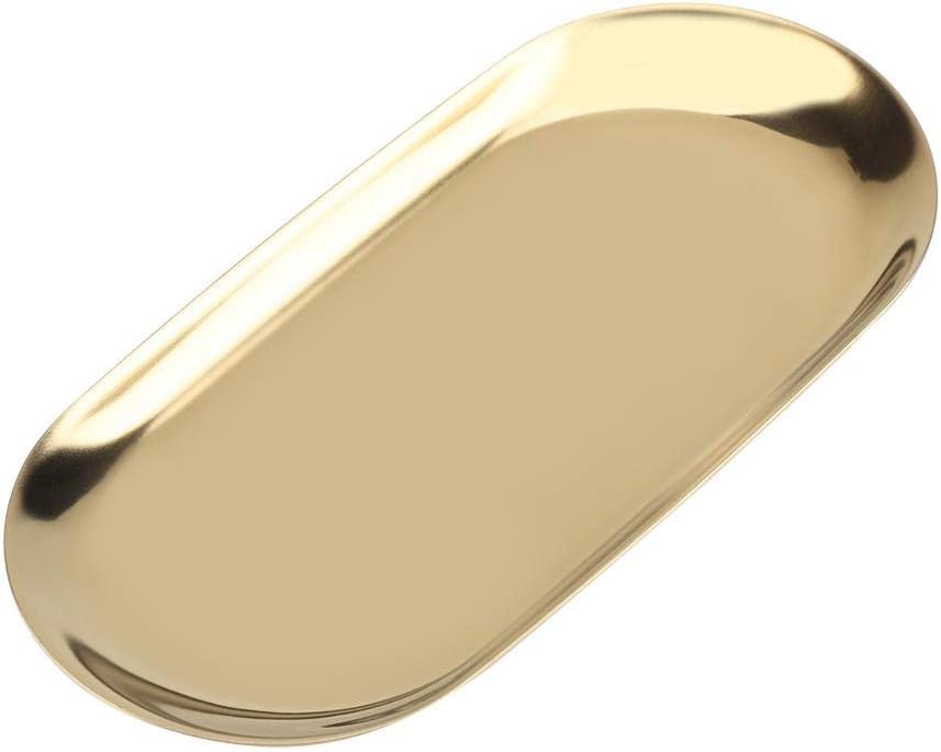Design oval em inox: Bandeja elegante, superfície polida, resistente e durável para segurar ou exibir.
