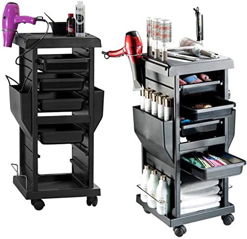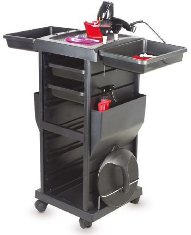 Este carrinho de profissionais altamente apreciado por esteticistas e barbeiros possui uma estrutura sólida de material plástico que é muito resistente ao desgaste e fácil de lavar.