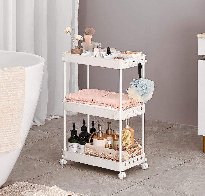 Fácil de montar e armazenamento adicional: este carrinho de utilidade não precisa de ferramentas para instalar.