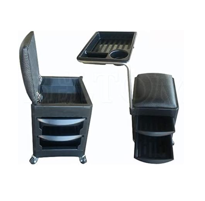 Carrinho para pedicure e manicure profissional, com estrutura sólida contém 3 compartimentos de armazenamento 2 gavetas + 1 compartimento oculto sob o assento.