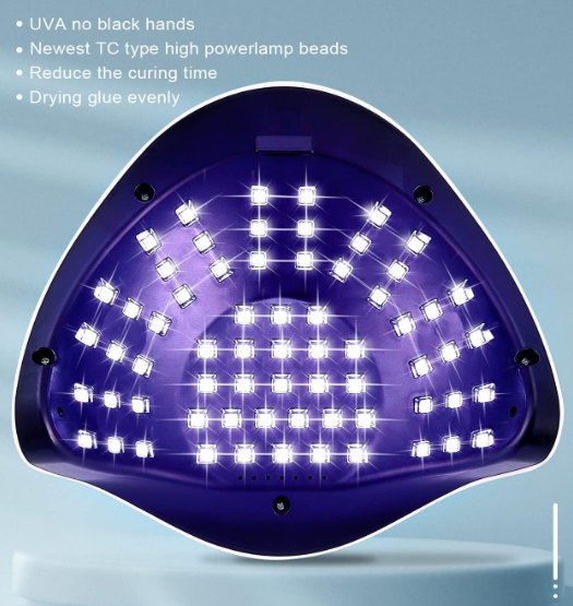Equipado com 66 contas de lâmpada LED de longa duração, a vida útil é de 50.000 horas. Potência de 280 W, secagem rápida, em comparação com outros secadores de unhas, a eficiência de secagem é dobrada.