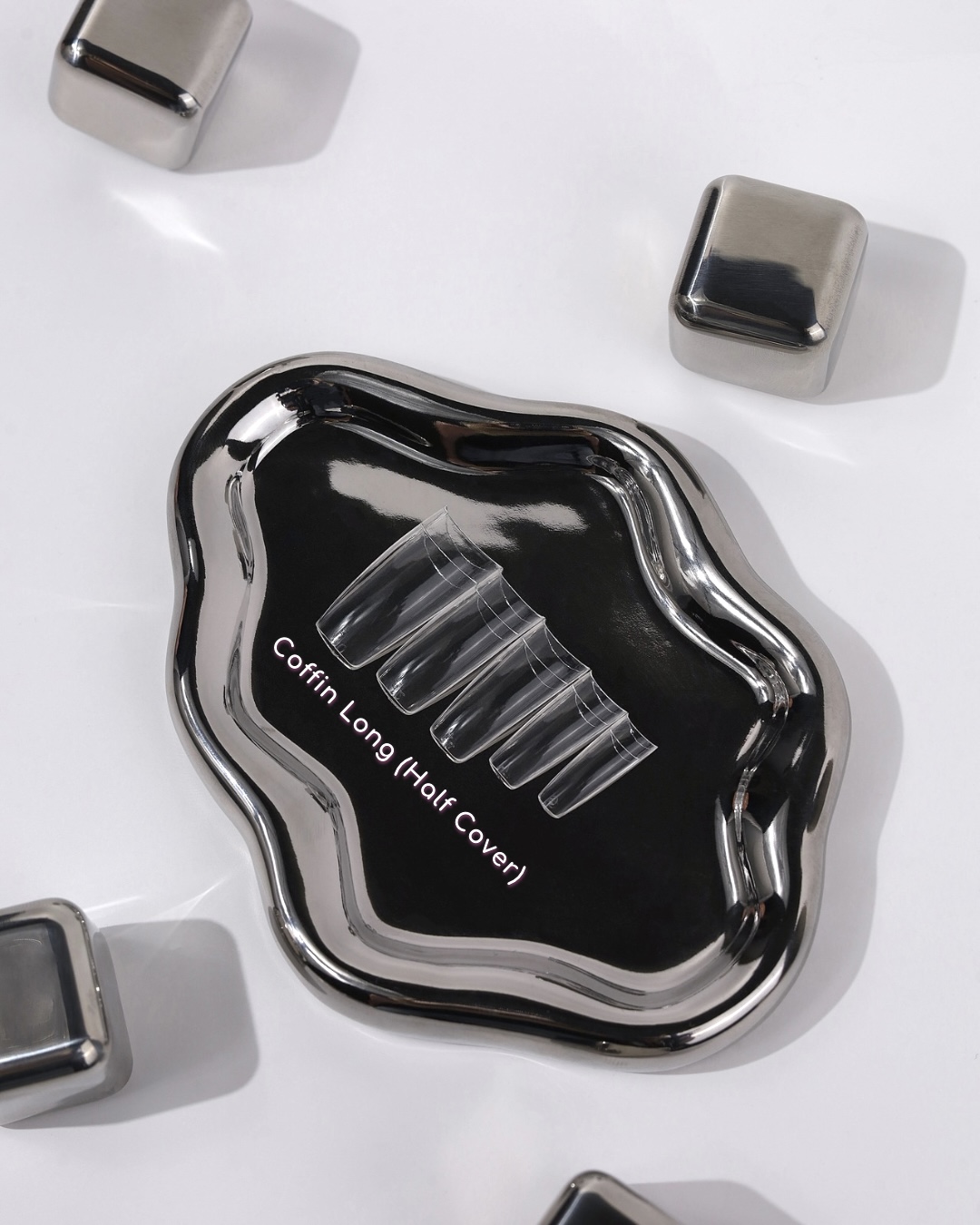 Fabricadas em gel acrílico de alta qualidade, podem ser facilmente limadas e removidas com removedor de verniz gel. O formato coffin longo de meia cobertura (3 cm) oferece o equilíbrio ideal entre resistência e elegância.