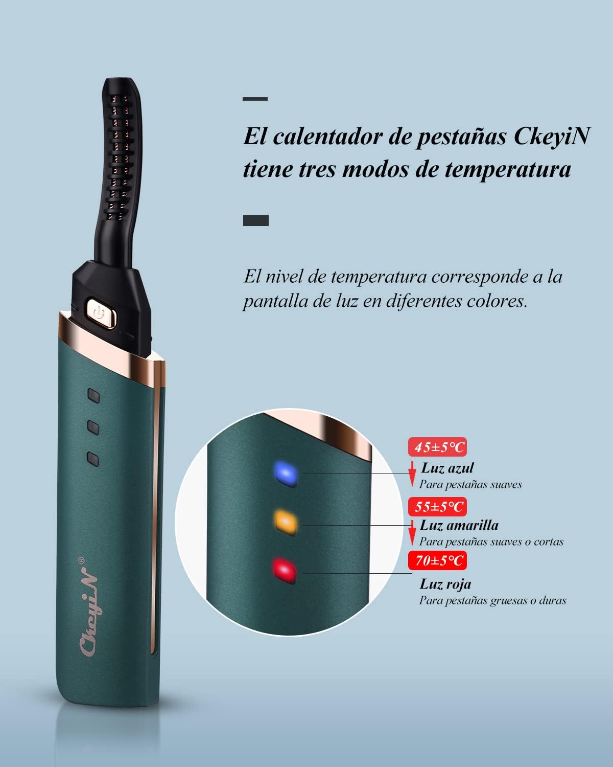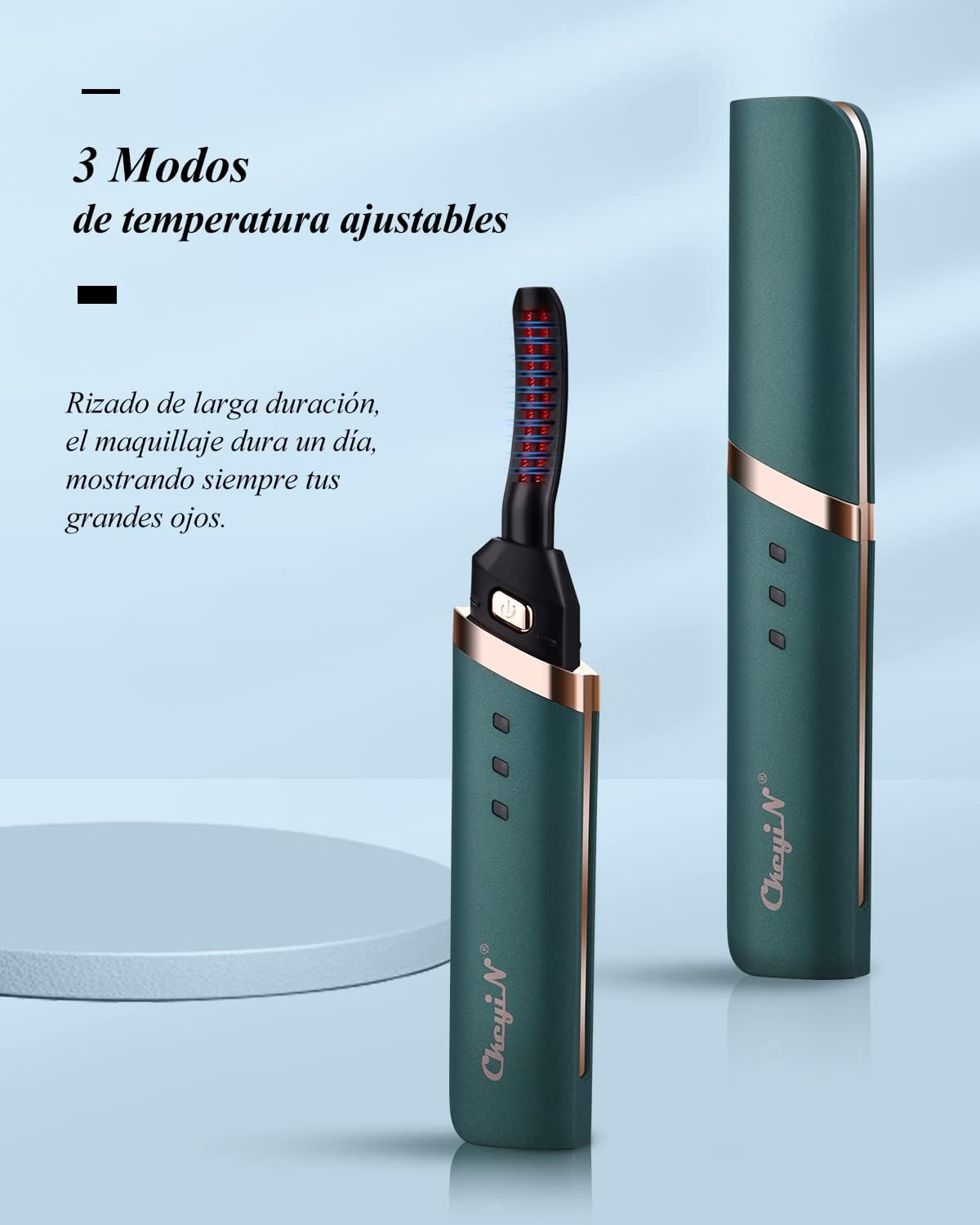 3 diferentes temperaturas ajustáveis de 45°C/55°C/70°C.45°C para cílios macios, 55°C para cílios grossos, efeito de ondulação mais rápido, 75°C é o melhor.