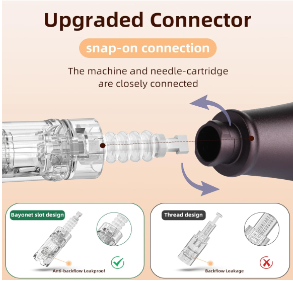 5 velocidades e mostrador ajustável: A caneta microneedle está equipada com 5 modos de velocidade (7.000 - 11.000 rotações por minuto) fazendo um movimento vertical rápido que minimiza a dor.