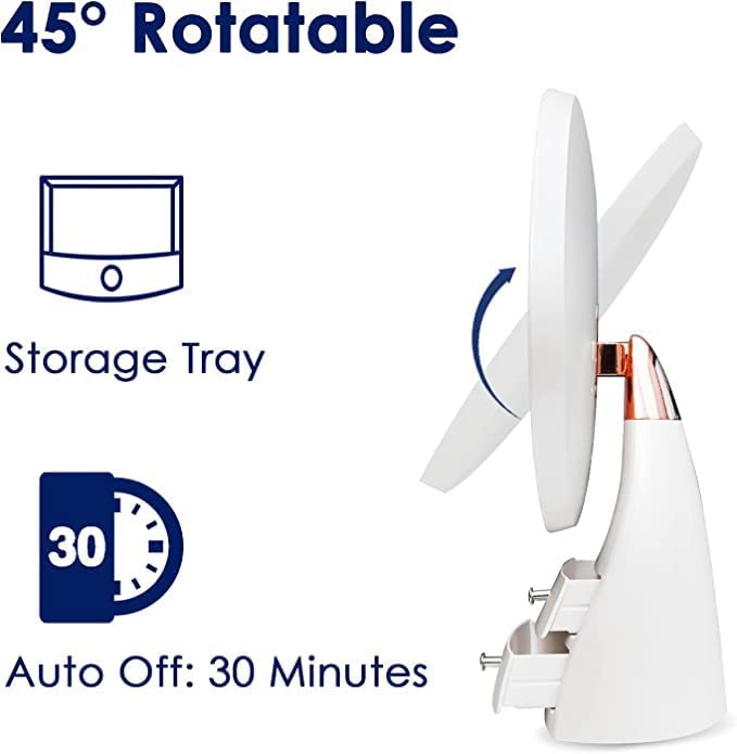 Aumento 10X: O espelho de mesa vem com um mini aumento 10X para maquilhagem finamente. Notas: ao usá-lo, terá de aproximar o seu rosto muito perto (aprox. 10 cm) no espelho para ver claramente.