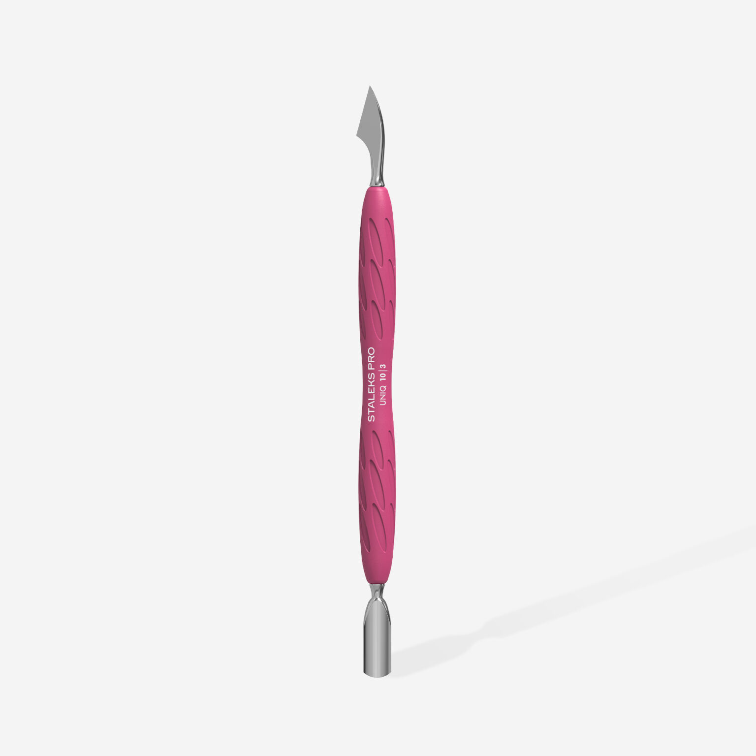 Empurrador de cutículas com cabo em silicone “Gummy” UNIQ 10 Tipo 3 (ponta arredondada estreita + lâmina)