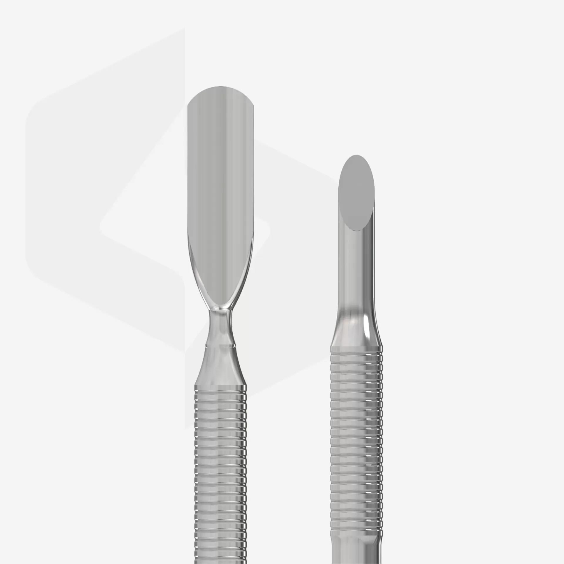- Empurrador inclinado: utilizado para levantar e empurrar cutículas ásperas e fortemente aderentes, limpar o bordo livre da unha e remover resíduos de verniz de gel.
