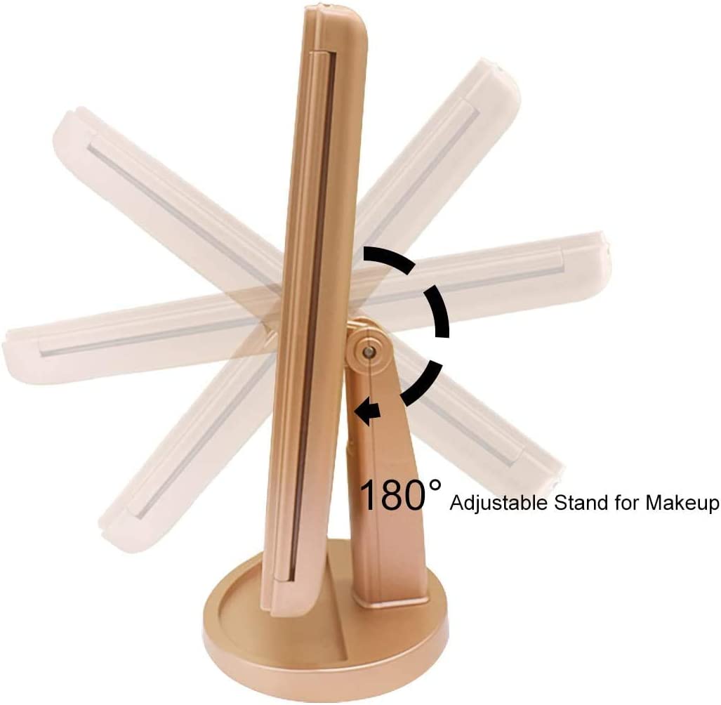 O espelho de maquilhagem iluminado localizado na bancada pode ser ajustado livremente e um ângulo de visão perfeito e confortável pode ser fixado. O design tríptico e desmontável permite-lhe levá-lo para onde quer que vá