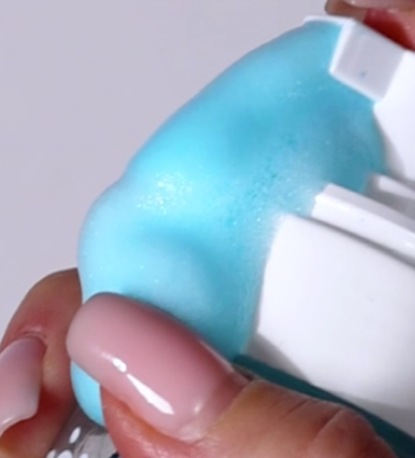 Aplique uma pequena quantidade da espuma sobre a pele húmida na área das sobrancelhas.