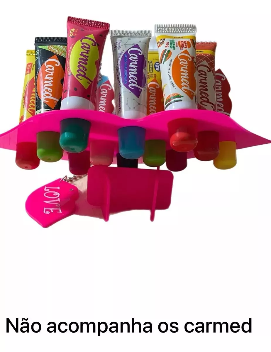 Apresentamos um Organizador exclusivo, confeccionado com acrílico de alta qualidade, projetado para até 12 hidratantes labiais tipo Carmed.