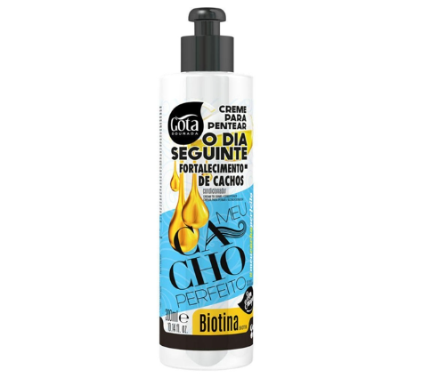O Creme de Pentear Gota Dourada Dia Seguinte com Biotina foi desenvolvido especialmente para revitalizar os cachos entre as lavagens, ajudando a manter a definição e o brilho por muito mais tempo. Enriquecido com biotina, fortalece os fios, promove hidratação profunda e melhora a flexibilidade e textura, deixando os cabelos maleáveis, nutridos e com movimento natural.