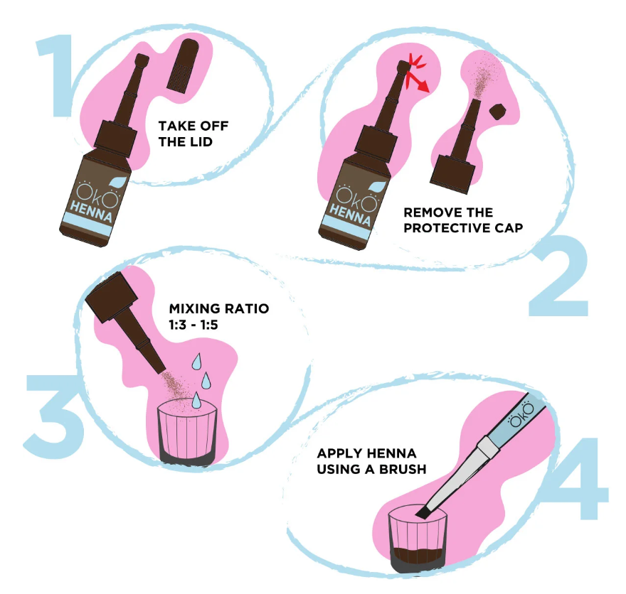 - Misture a henna com água destilada ou solução mineral na proporção 1:3 (ou até 1:5 dependendo da técnica)