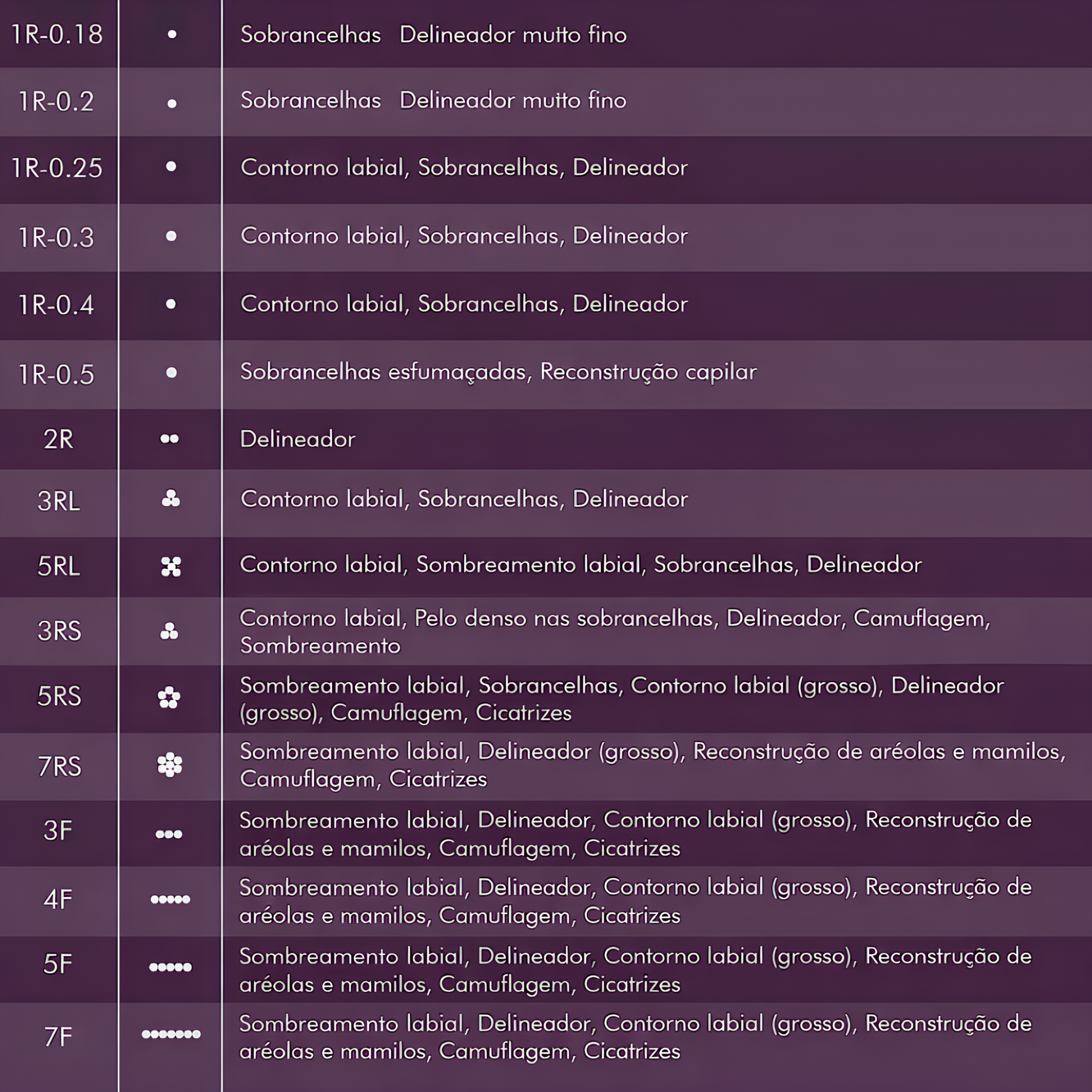 Este cartucho de agulha pode ser usado para sobrancelha, delineador, contorno de lábios.