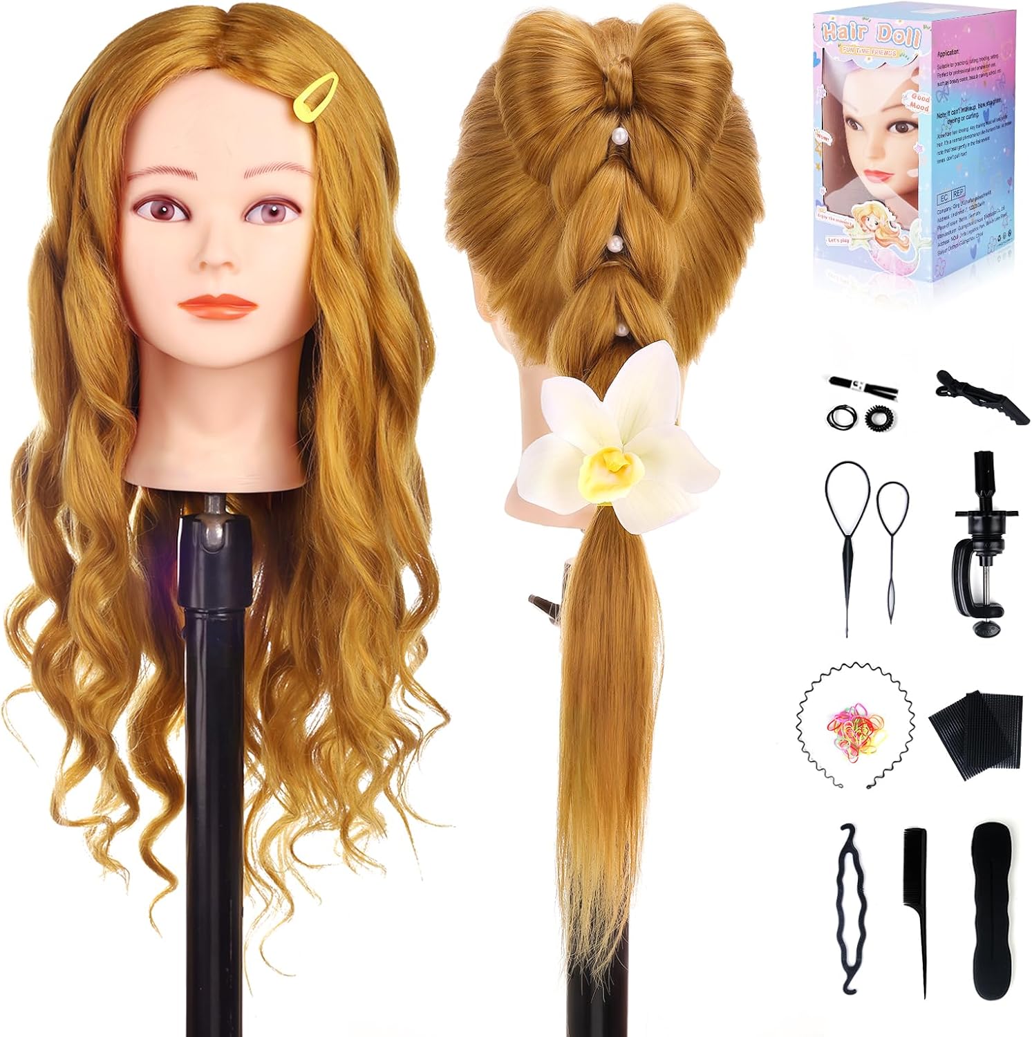 Uso: ideal para a prática de estilos de cabeleireiro, corte e trançado. Ideal para estudantes de cabeleireiro. Ideal para crianças pequenas para brincar ou também como artigo de ensino nas escolas ou jardins infantis
