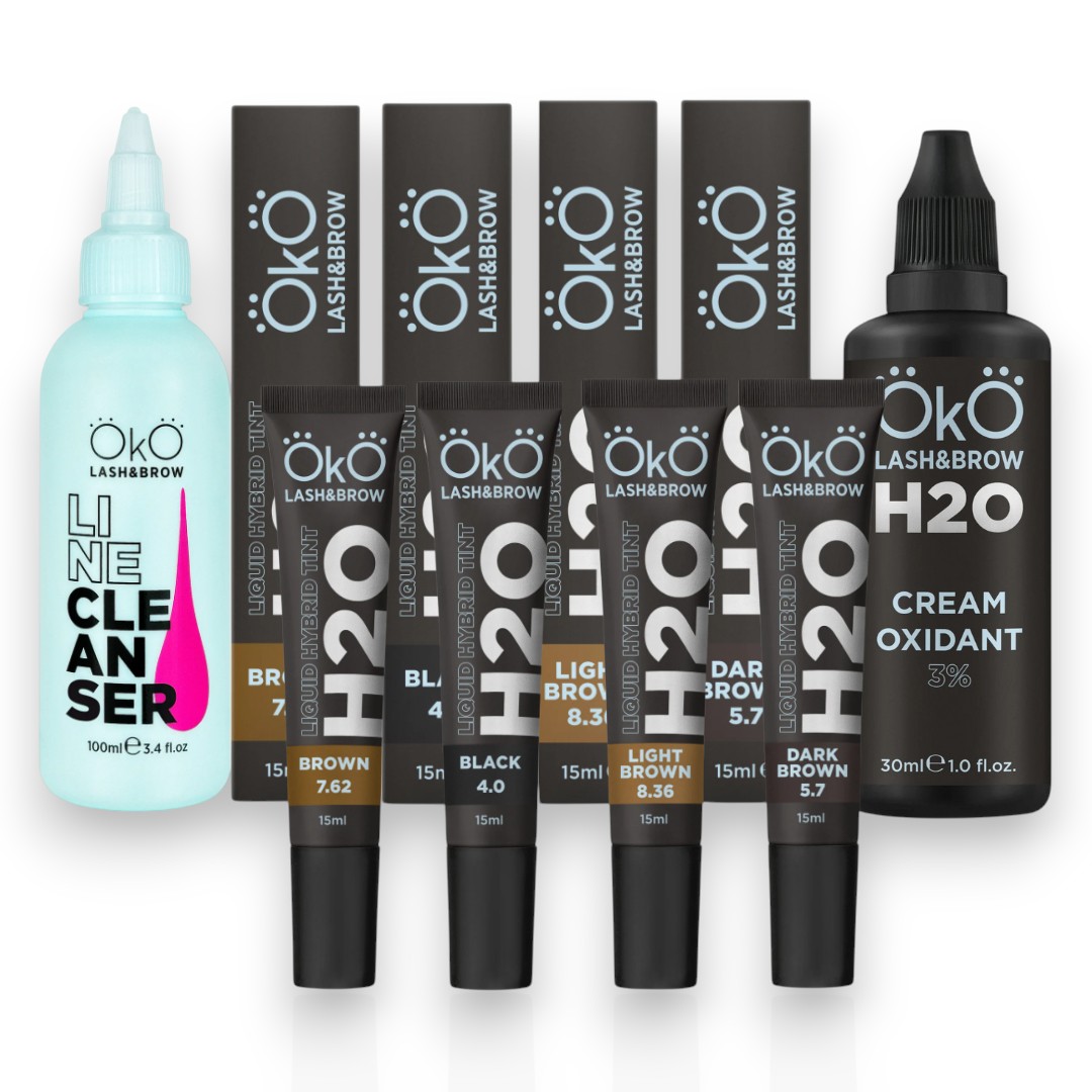 O Kit Coloração Profissional OKO foi desenvolvido para profissionais que procuram um conjunto prático e funcional para procedimentos de coloração de pestanas e sobrancelhas, reunindo tinturas híbridas líquidas e produtos de preparação compatíveis da mesma linha.