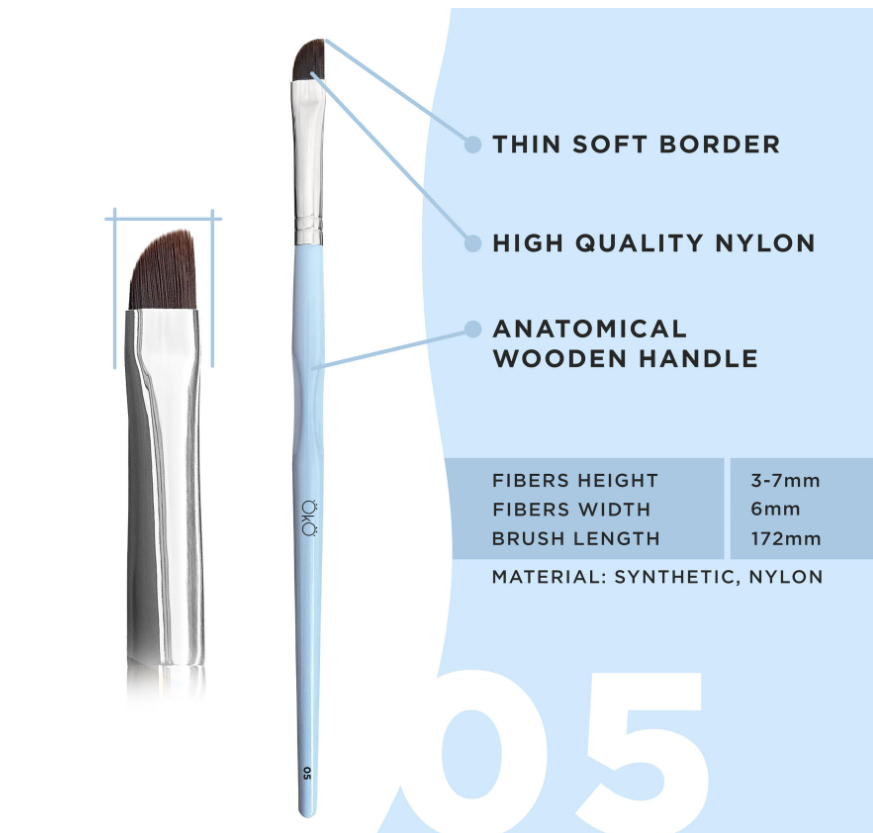 O Pincel Angular Macio nº 5 possui uma borda suave da fibra e permite a cor ombré perfeita combinada com uma linha de base limpa.