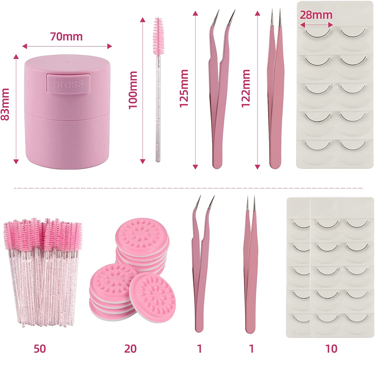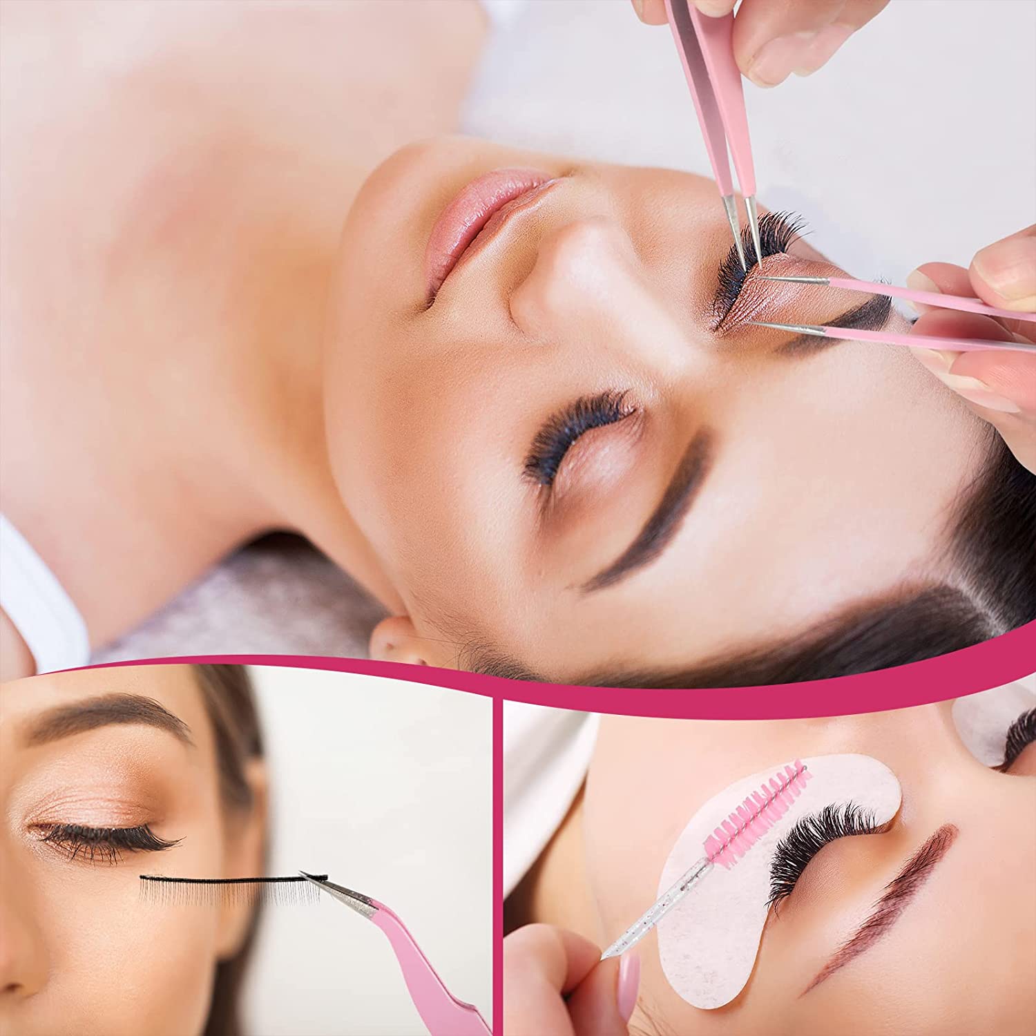 🌸 Kit Ferramentas Extensão de Pestanas Cor de Rosa