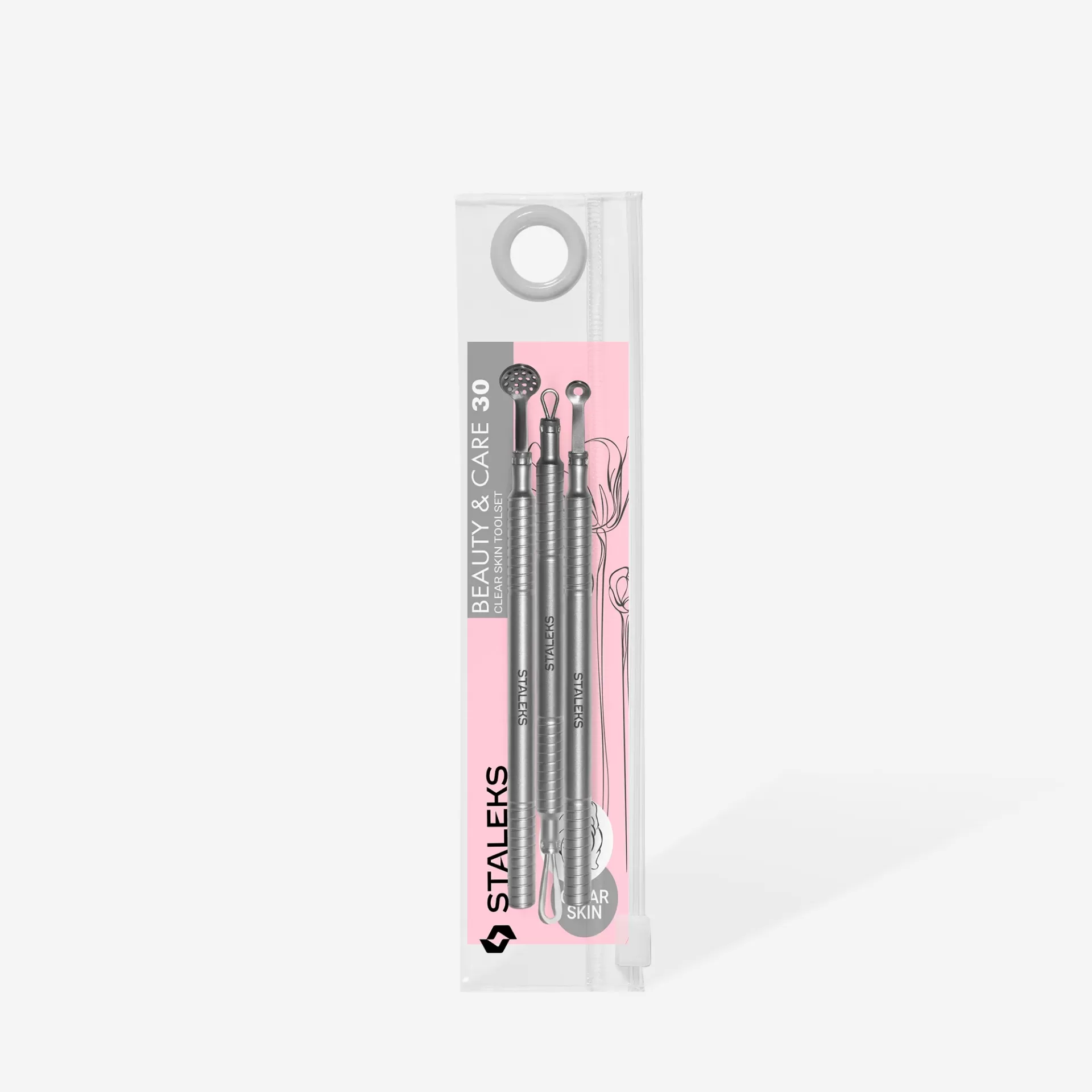 Kit cosmético "Pele limpa" BEAUTY & CARE 30 (colher UNO + colher ranurada de 19 furos + bisagra de dupla ponta)