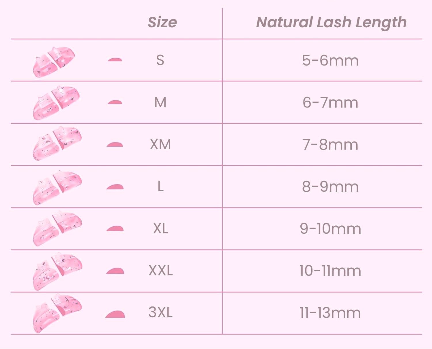 Esta versão melhorada inclui 7 tamanhos distintos, permitindo ao profissional escolher o molde ideal de acordo com o comprimento natural das pestanas e o efeito desejado. Uma solução prática e completa para diferentes clientes e técnicas.