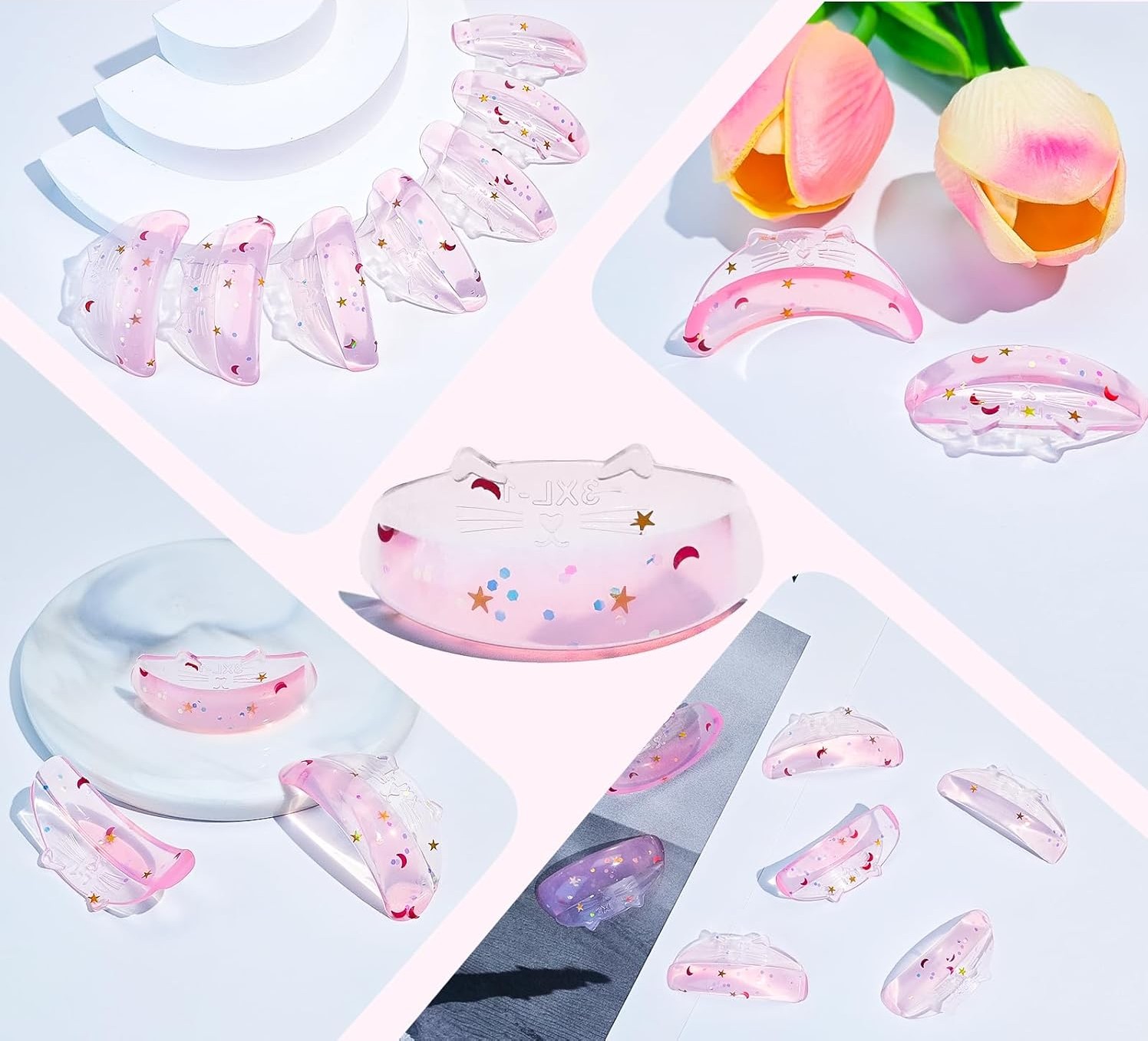 Os moldes de silicone para levantamento de pestanas foram desenvolvidos para oferecer máxima aderência, conforto e versatilidade durante os procedimentos de lash lift. Com um design adorável e funcional, este conjunto inclui 7 pares em 7 tamanhos diferentes, adequados a todos os comprimentos de pestanas.