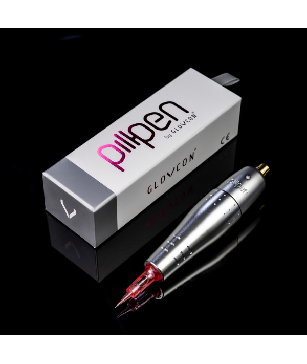 A caixa compacta com um comprimento de 11cm e uma alça com diâmetro de apenas 17mm possui um motor de 4,5W muito durável ajustado especialmente para todos os tipos de tratamentos. Outra grande vantagem da Pen Pill é o seu peso de 120g. A massa foi distribuída uniformemente para que trabalhar com a máquina não seja cansativo durante a pigmentação.
