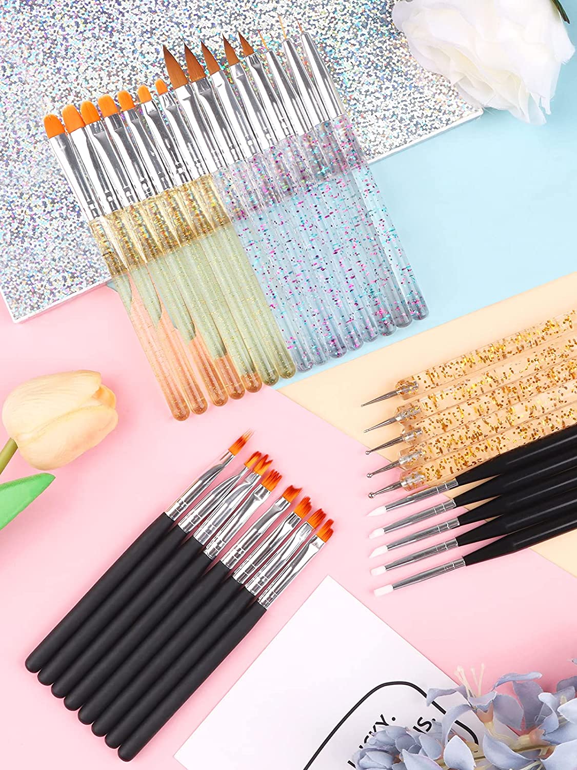 As escovas de nylon para unhas são macias ao toque e não caem facilmente; as canetas de pontos para nail art são feitas de ponta de metal, duráveis e não são fáceis de quebrar, são leves e duráveis, o corpo do cabo é feito de plástico acrílico, além de um design estampado de flores, superfície lisa, resistente e durável.