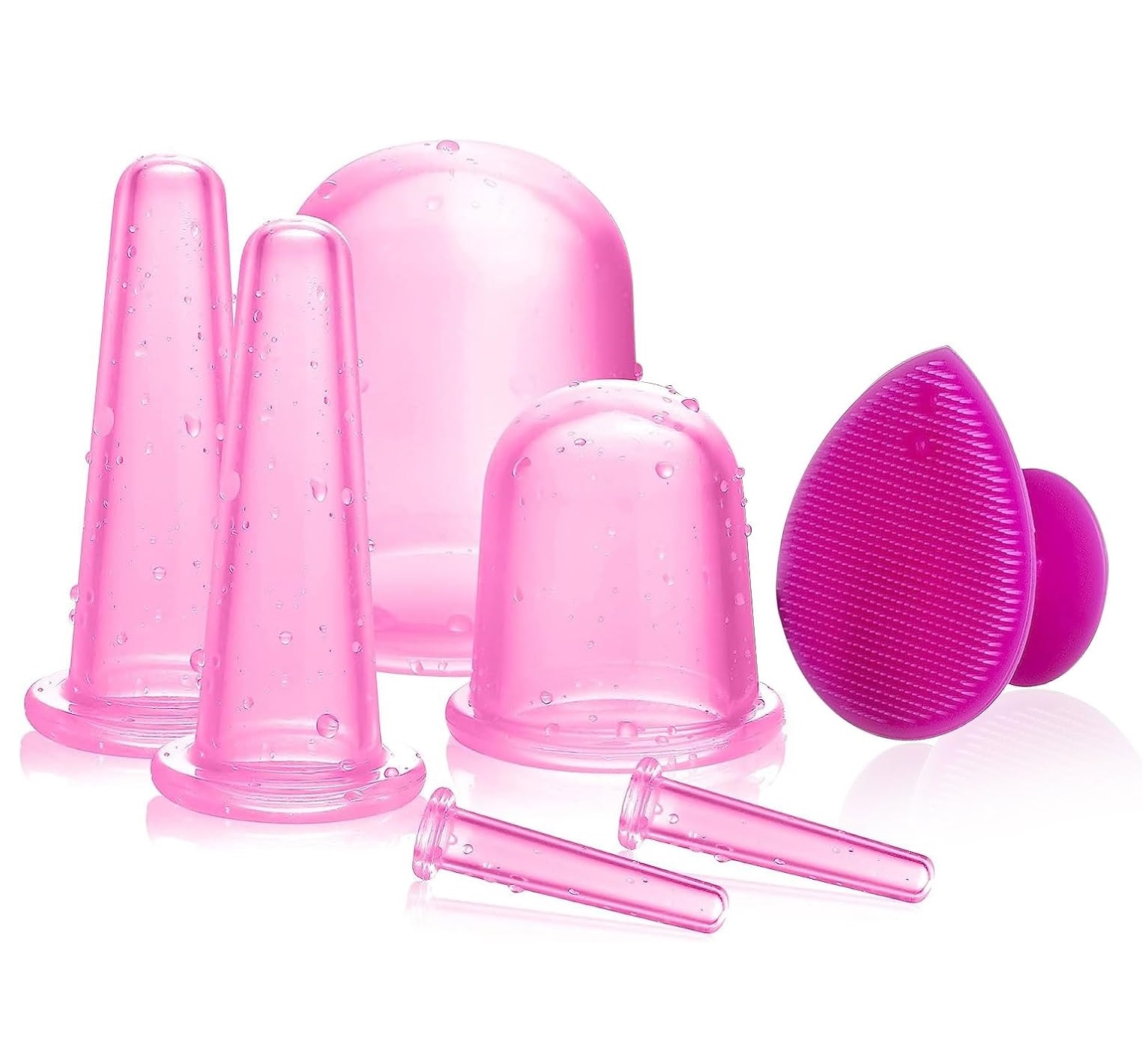 Kit Ventosas Pink para Corpo e Rosto com Escova Facial Esfoliante