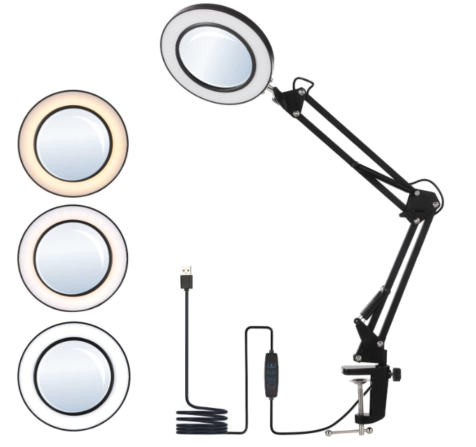 Lupa com Luz Led de Mesa com Suporte