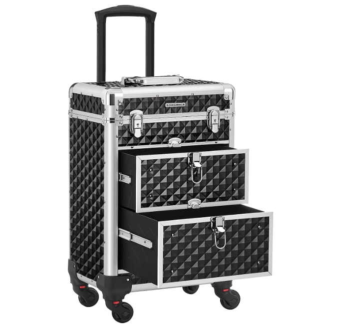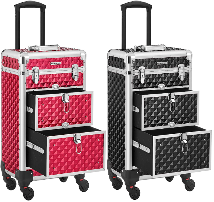 3 níveis superiores com 4 separadores flexíveis para divisão individual são adequados para pequenas coisas como batom e sombras; as 2 gavetas grandes na parte inferior são boas para secadores de cabelo ou catalisador UV para unhas