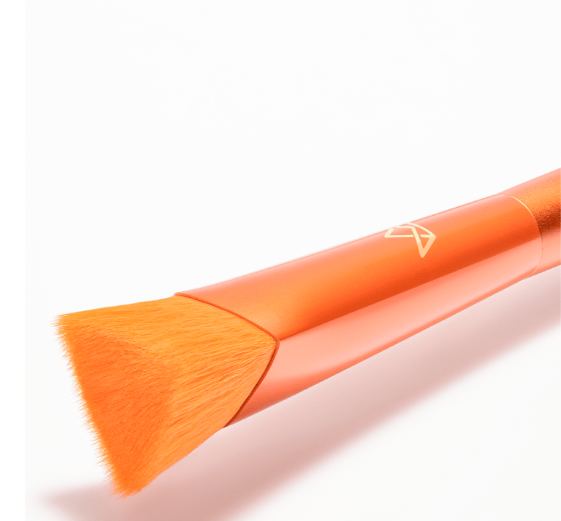Design exclusivo e patenteado, o nosso mini pincel traz o formato ideal para detalhes e iluminação na pele, pois encaixa perfeitamente nos ângulos do rosto durante a aplicação do produto.