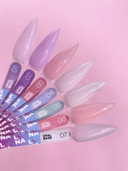 - Remova a camada pegajosa e aplique a Opal Base Nº5 uniformemente sobre toda a unha.