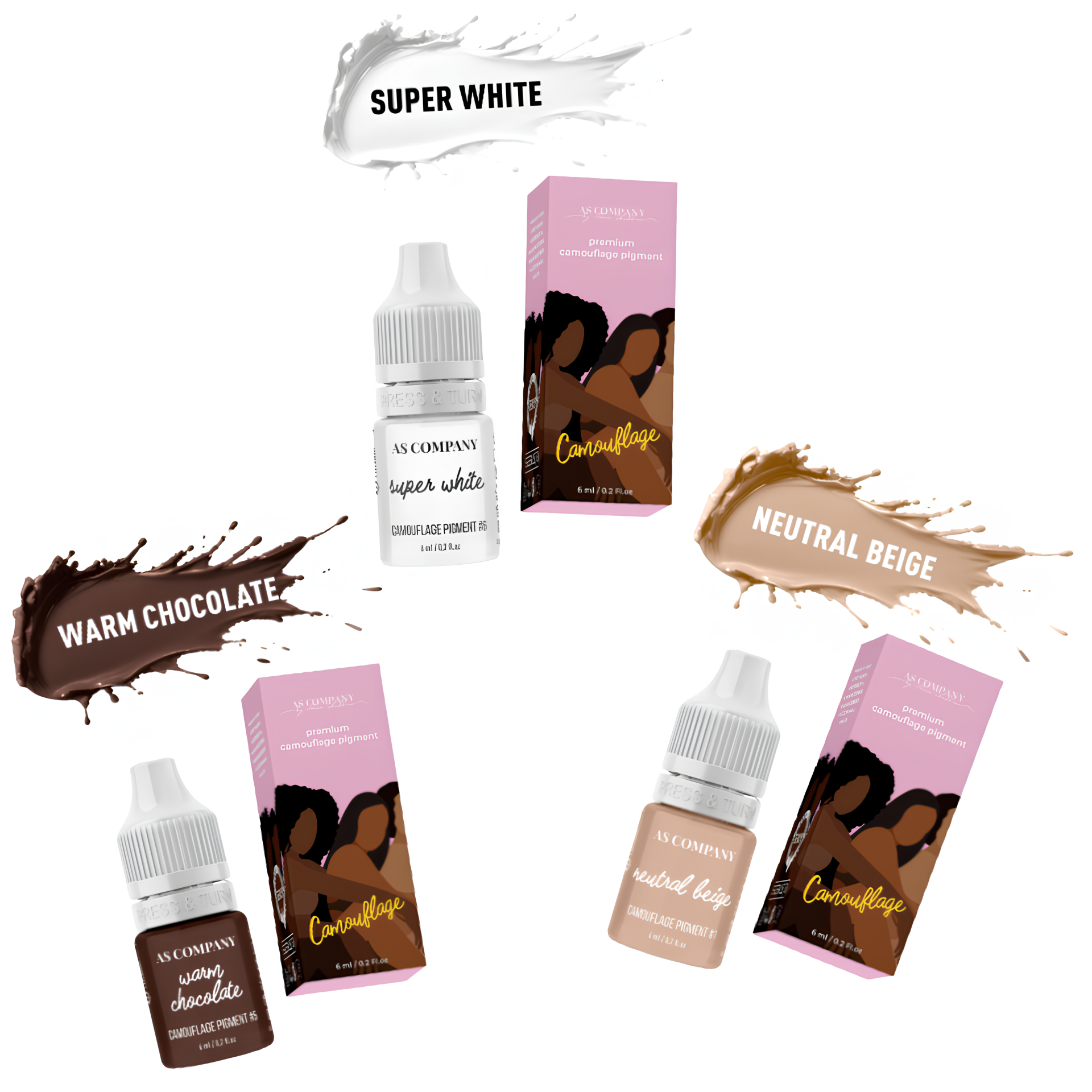 A AS Company, em parceria com a artista Anastasia Spiridonova, desenvolveu a Linha Camouflage, especialmente concebida para corrigir imperfeições da pele como hiper e hipopigmentação, rosácea, cicatrizes pós-acne, cicatrizes traumáticas e outras lesões cutâneas.