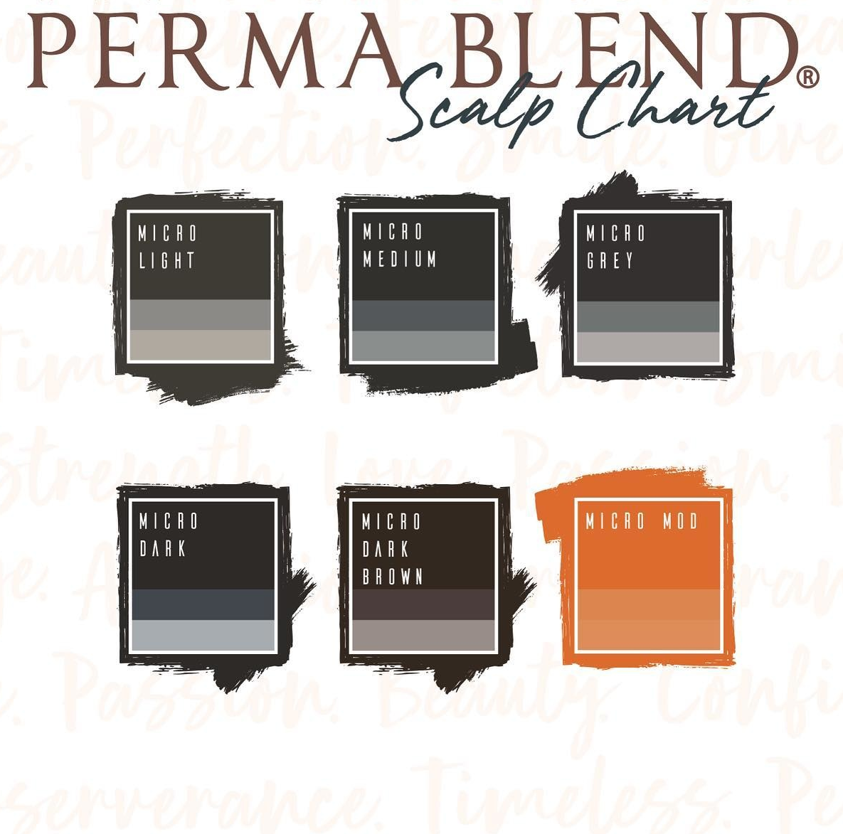 Pigmentos Perma Blend Capilar são especialmente misturados para o couro cabeludo. A qualidade destes pigmentos foi formulada para durar mais e necessitar de retoques mínimos. O conjunto é composto por cinco cores que variam do cinza claro ao preto e por vezes até castanho e contém, igualmente, um modificador cor de laranja e complementarmente um frasco de Solução de Sombreamento Fino: