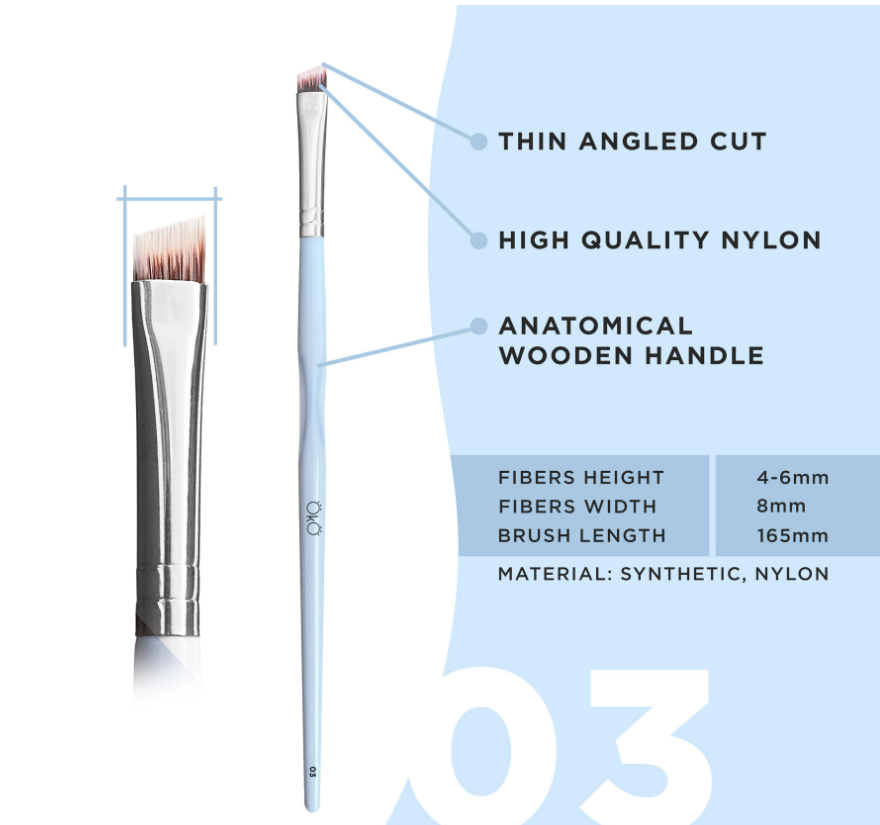 O pincel angular nº 3 da OKO Lash&Brow foi desenvolvido especialmente para profissionais da estética que valorizam acabamento técnico e conforto no manuseio.