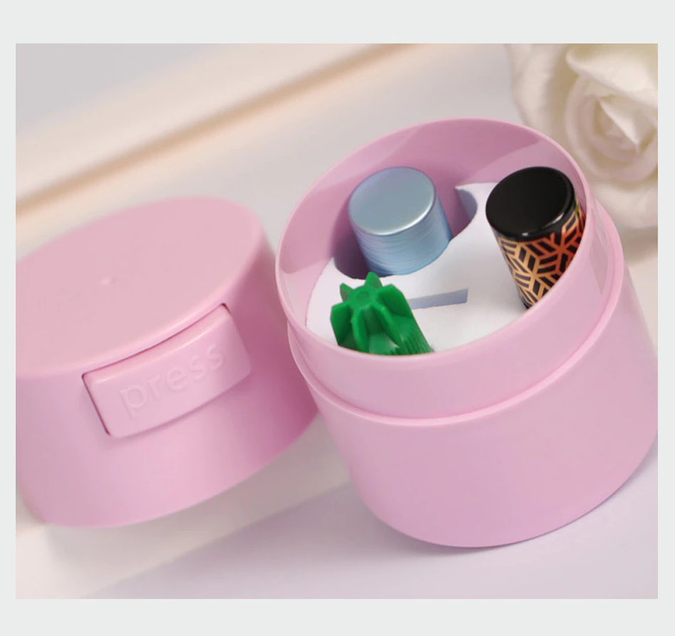 Tanque para armazenamento de colas, primers, máscaras de pestanas, etc. Isola contra luz, calor e humidade aumentando a vida útil do produto mantendo a sua qualidade original. Recipiente comporta 3 frascos. Ideal para Extensionistas de pestanas.