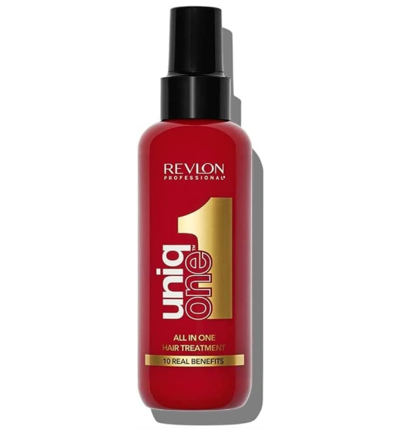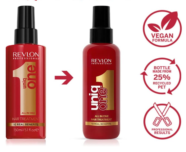 O tratamento condicionador sem enxaguar a spray UniqOne da REVLON profissional. Este tratamento para cabelos encaracolados hidrata o cabelo e o deixa mais macio e sedoso do que nunca. Se passa um dia relaxante em casa ou se tiver um duro dia de trabalho pela frente, o seu cabelo permanecerá macio ao toque graças ao efeito duradouro e reparador da UniqOne para cabelos danificados.
