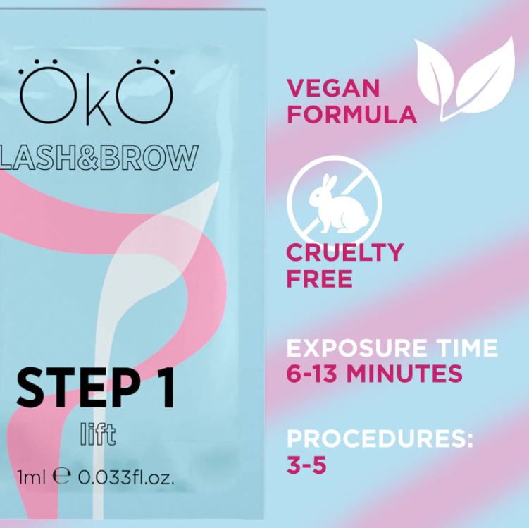 OKO STEP 1 LIFT é a primeira etapa do processo de laminação de pestanas ou da estilização de sobrancelhas de longa duração. A sua fórmula possui um pH alcalino, responsável por quebrar as ligações dissulfeto na estrutura dos pelos, permitindo que os princípios ativos penetrem profundamente no fio e iniciem a remodelação.