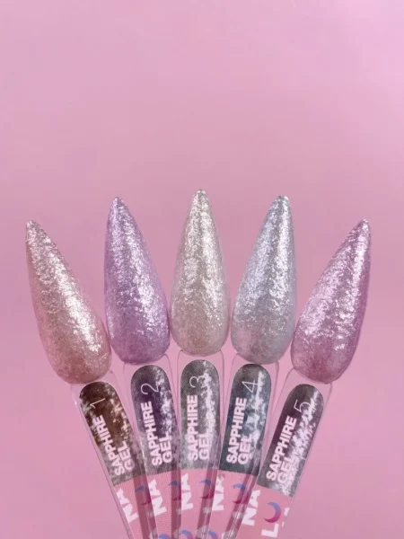 O LUNAmoon Sapphire Gel Nº4 é uma pasta de gel metálica com partículas prateadas e reflexo azulado, ideal para criar designs modernos e sofisticados. A sua textura cremosa e o brilho intenso proporcionam um acabamento espelhado com efeito “metallic ice”, perfeito para detalhes elegantes ou coberturas completas.