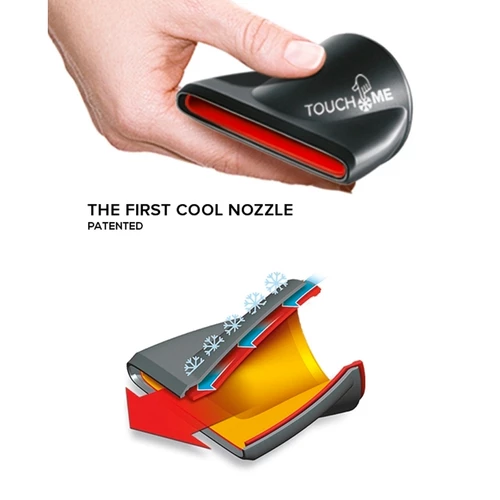 O seu bocal patenteado Touch Me, tem um inovador sistema de arrefecimento de camada dupla, que permite que o bico possa ser tocado e girado em qualquer direção durante o uso do secador sem que este sobreaqueça.