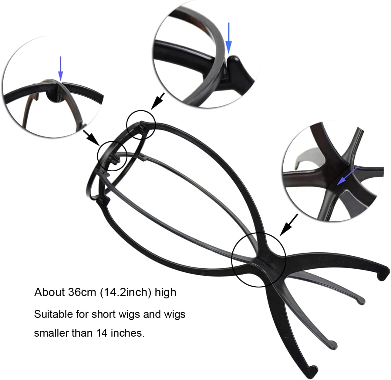 O suporte para peruca é fácil de montar e desmontar, além de exibir a peruca, também pode ser usado como suporte para secar depois de lavar a peruca.