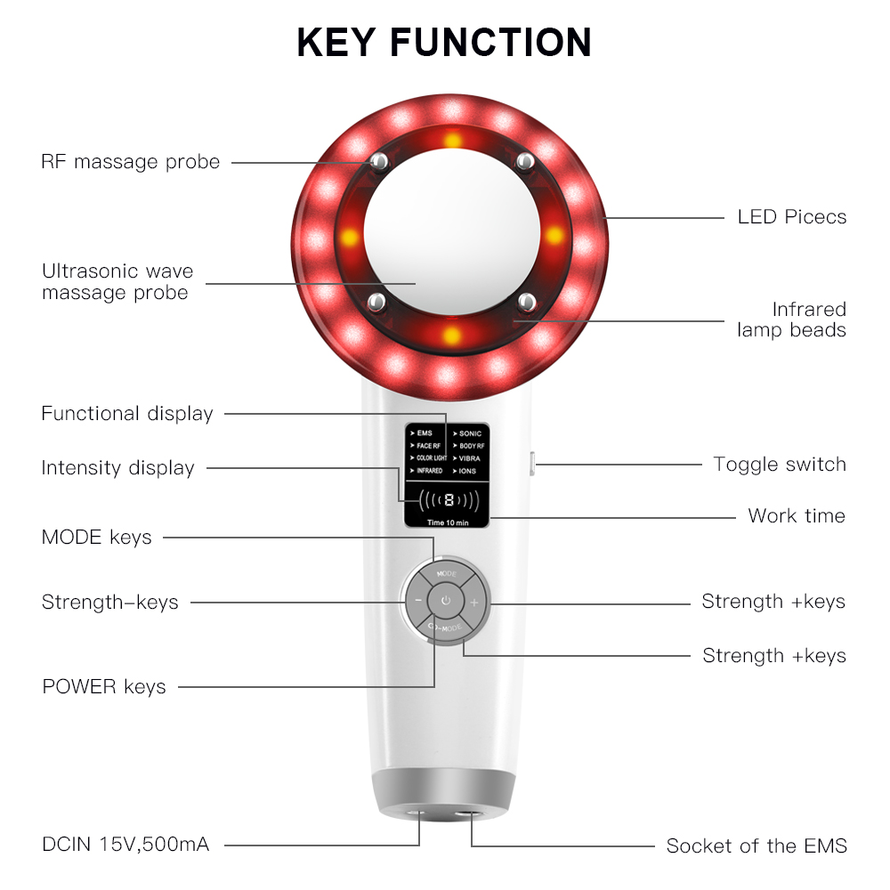 As suas funções projetadas para ajudar a sua pele a rejuvenescer e construir um corpo perfeito. Função ajuda a remover rugas faciais, diluir sarda facial, a pele fica mais branca e lisa. Pele firme do olho, rugas suaves do olho, olheiras. Encolher os poros, pele solta, remover o queixo duplo