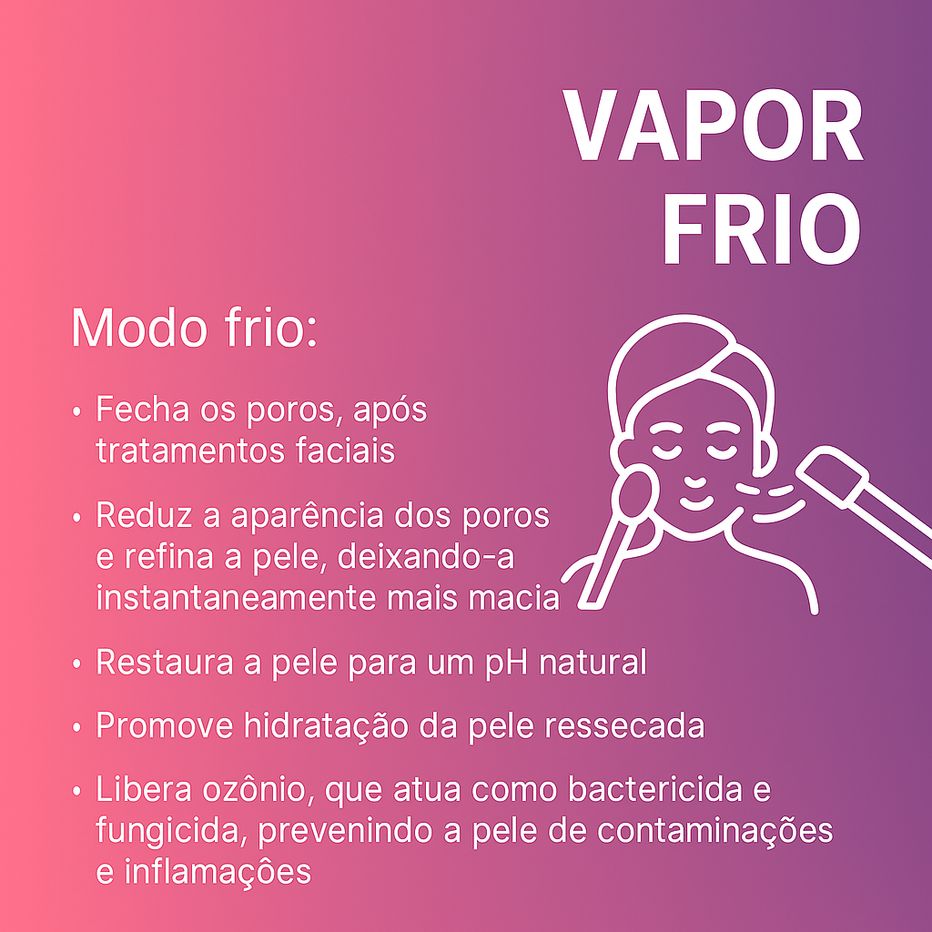 ✔️ Vapor frio para fechar os poros e acalmar a pele