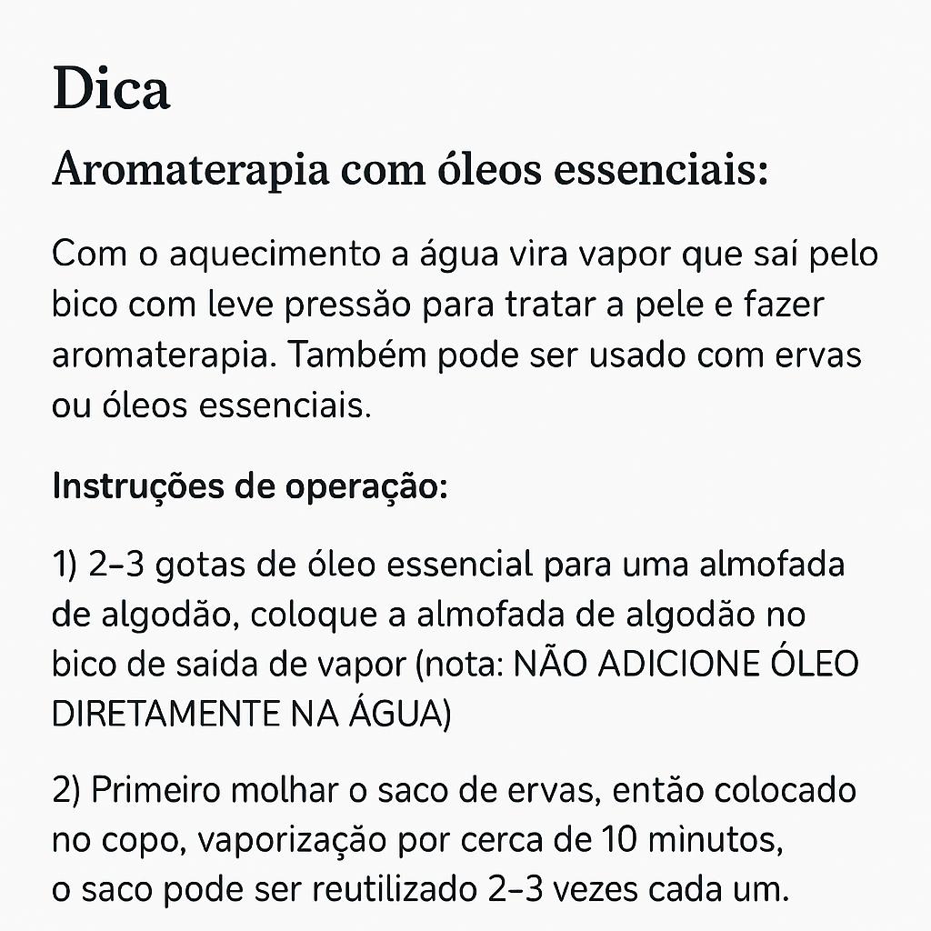 ✔️ Ideal para tratamentos faciais, aromaterapia e cuidados de barbear