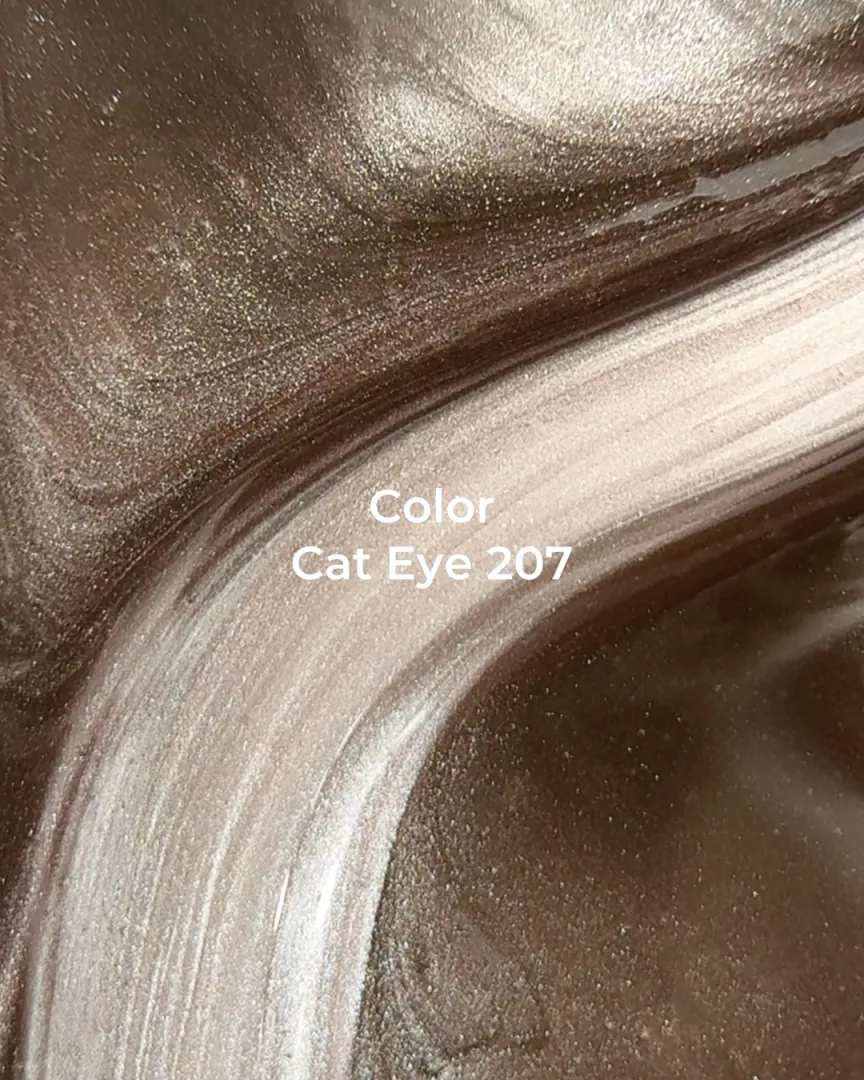 - Aplique o Verniz Gel Cat Eye Nº207 em 1–2 camadas finas.