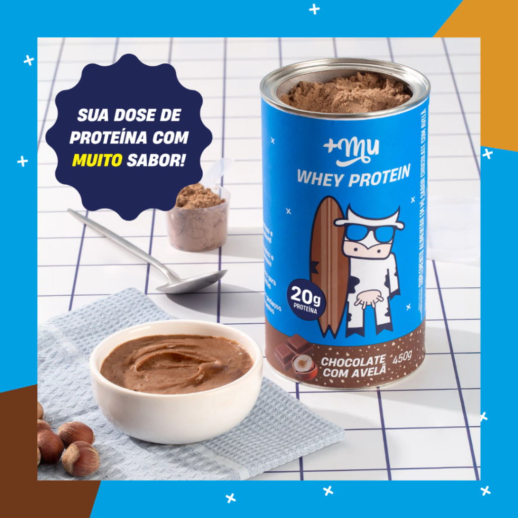 Whey Concentrado Mais Mu - Chocolate com Avelã - Pote 450g - PRÉ-VENDA📍